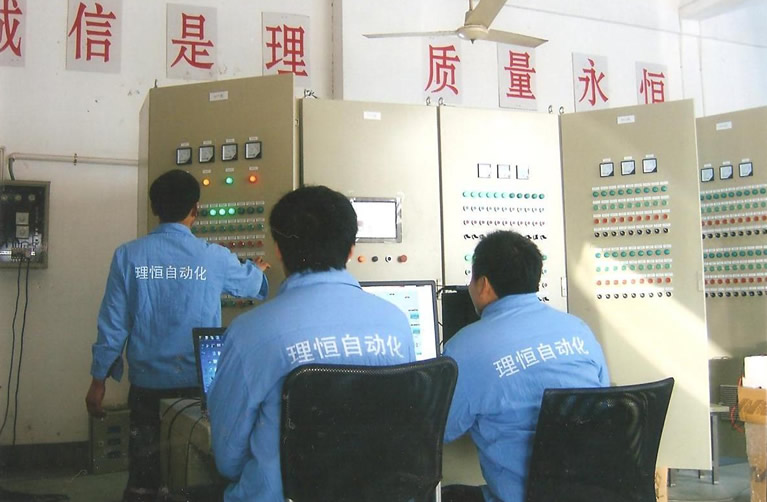 為進(jìn)一步滿足用戶的需求,保證每臺(tái)PLC柜的規(guī)范運(yùn)行,我公司責(zé)任落實(shí)到個(gè)人。圖為車間工程技術(shù)人員在產(chǎn)品出廠前對(duì)每臺(tái)柜子進(jìn)行程序調(diào)試和畫面設(shè)計(jì)。