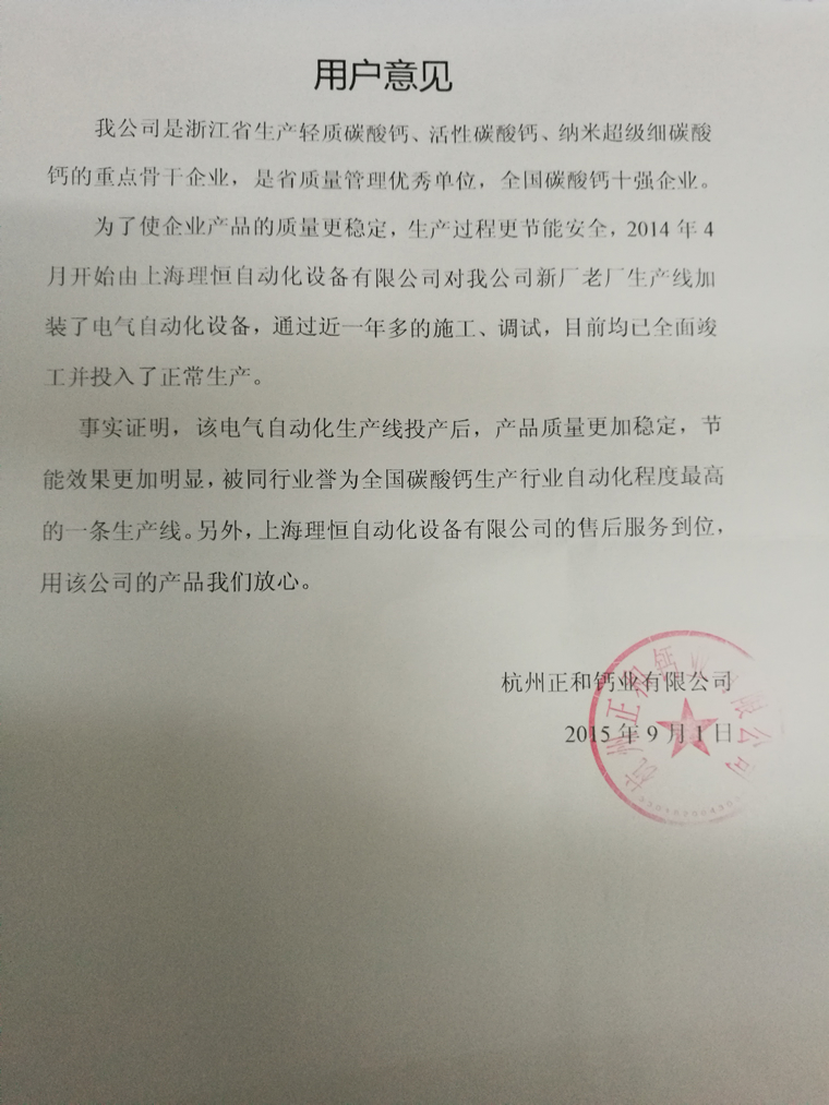 國內(nèi)絕大部分碳酸鈣生產(chǎn)企業(yè)的生產(chǎn)目前都還處于高能耗低產(chǎn)出和嚴重污染環(huán)境的現(xiàn)狀。理恒電氣自動化公司近年為浙江杭州某碳酸鈣生產(chǎn)企業(yè)提供了一套自主知識產(chǎn)權(quán),年產(chǎn)10萬噸的自動化裝置,不但大大穩(wěn)固了生產(chǎn)工藝,全程實現(xiàn)了自動化磨漿生產(chǎn),向除塵環(huán)保生產(chǎn)也邁出了可喜一步,而且明顯降低了勞動強度,實現(xiàn)了資源的綜合利用。目前,由理恒自動化公司為該企業(yè)施工的第二條生產(chǎn)線也已投入使用。