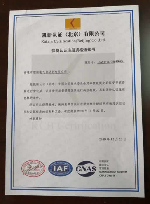 2019年底,我司全面質(zhì)量管理體系又獲得國家專家組全面審核通過,具備繼續(xù)保持國家認(rèn)證注冊資格條件。