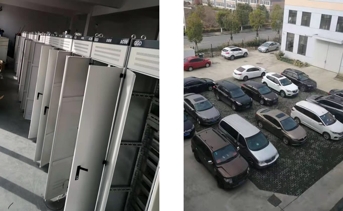 第二生產(chǎn)車間成一字排開(kāi)的湖北省龍翔制藥污水處理電氣自控項(xiàng)目的電控柜和公司員工停車場(chǎng)一角