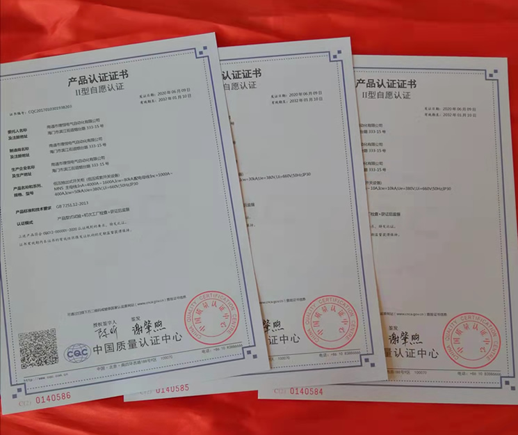 近日,我司生產(chǎn)的交流低壓配電柜、動力配電箱、低壓抽出式開關柜等低壓成套開關設備獲得國家專家組的質(zhì)量認定,上述產(chǎn)品符合CQC12-000001-2020認證規(guī)則的要求,并給我司頒發(fā)了產(chǎn)品認證證書。