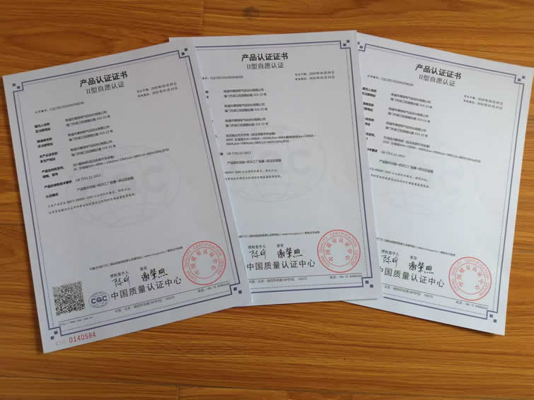 我司通過(guò)由中國(guó)質(zhì)量認(rèn)證中心派出的專(zhuān)家組對(duì)我司生產(chǎn)制造的動(dòng)力配電箱、低壓抽出式開(kāi)關(guān)柜和交流低壓配電柜等低壓成套開(kāi)關(guān)設(shè)備生產(chǎn)制造流程,進(jìn)行了嚴(yán)格的檢查驗(yàn)收,并再次獲得國(guó)家質(zhì)量認(rèn)證中心頒發(fā)的認(rèn)證證書(shū)。